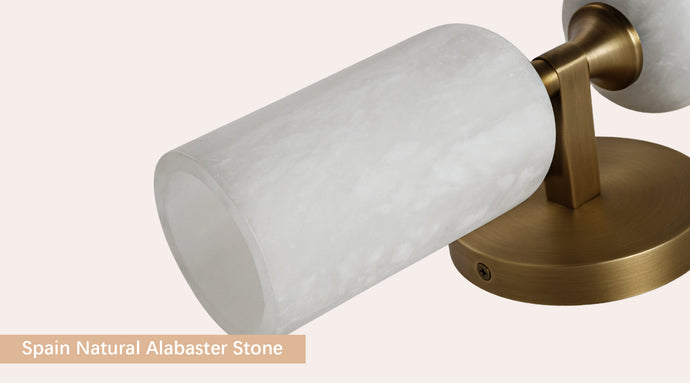 The Axis Alabaster Wall Sconce 35 cm features twin hand-carved Spanish alabaster shades, offering balanced, ambient lighting with timeless style. Each piece is naturally unique, adding a touch of elegance to any space.