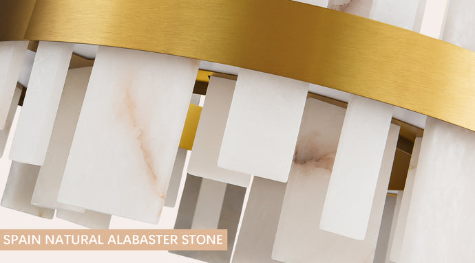 The Nocturne Alabaster Series features a sculptural halo of hand-cut Spanish alabaster panels, gently diffusing a soft, ambient glow. Its minimalist profile and warm luminosity make it ideal for dining rooms, living areas, or entryways, while the naturally veined stone ensures every fixture is uniquely beautiful. Designed for adjustable suspension and sloped-ceiling compatibility, it suits both modern and classic interiors.