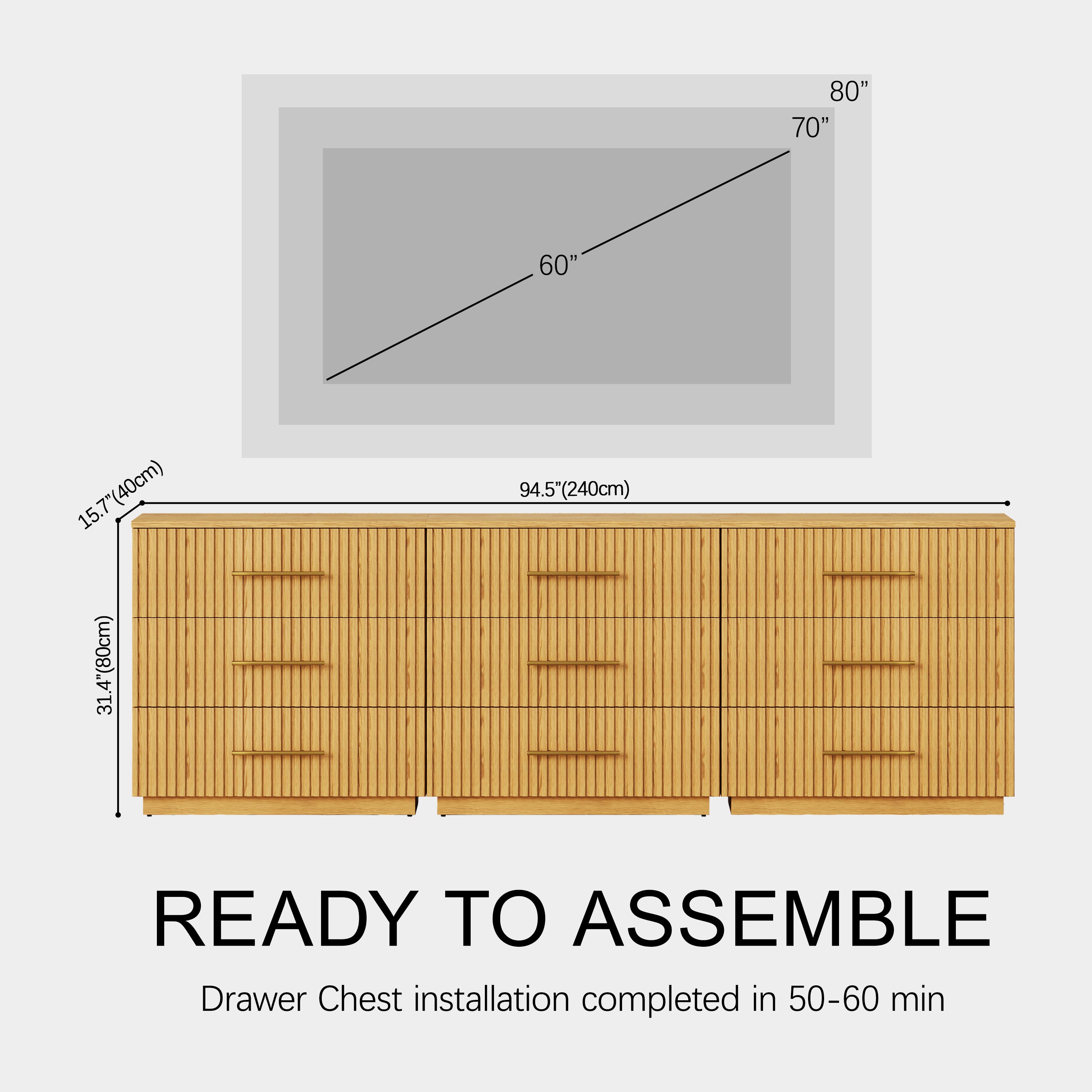 Alvar 95″ Oak 9-Drawer Chest(Set of 3)