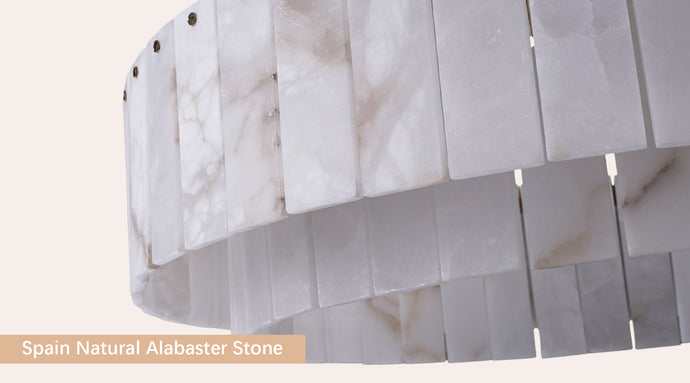 This Sawyer Alabaster Round Chandelier (80cm) is handcrafted from natural Spanish alabaster imported directly from Spain. Designed for both pendant and flush-mount installation, it features a softly glowing double-layered alabaster shade that creates gentle, ambient illumination. With its warm, non-glare effect and unique stone veining, this chandelier brings organic luxury to dining rooms, living areas, or bedrooms—each piece a unique work of art.
