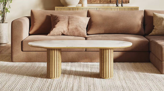 Placed in the center of the sofa, the Emery coffee table adds instant layers to the living room. The warmth of the wood balances the coolness of the stone perfectly, making it comfortable for watching TV or having coffee.