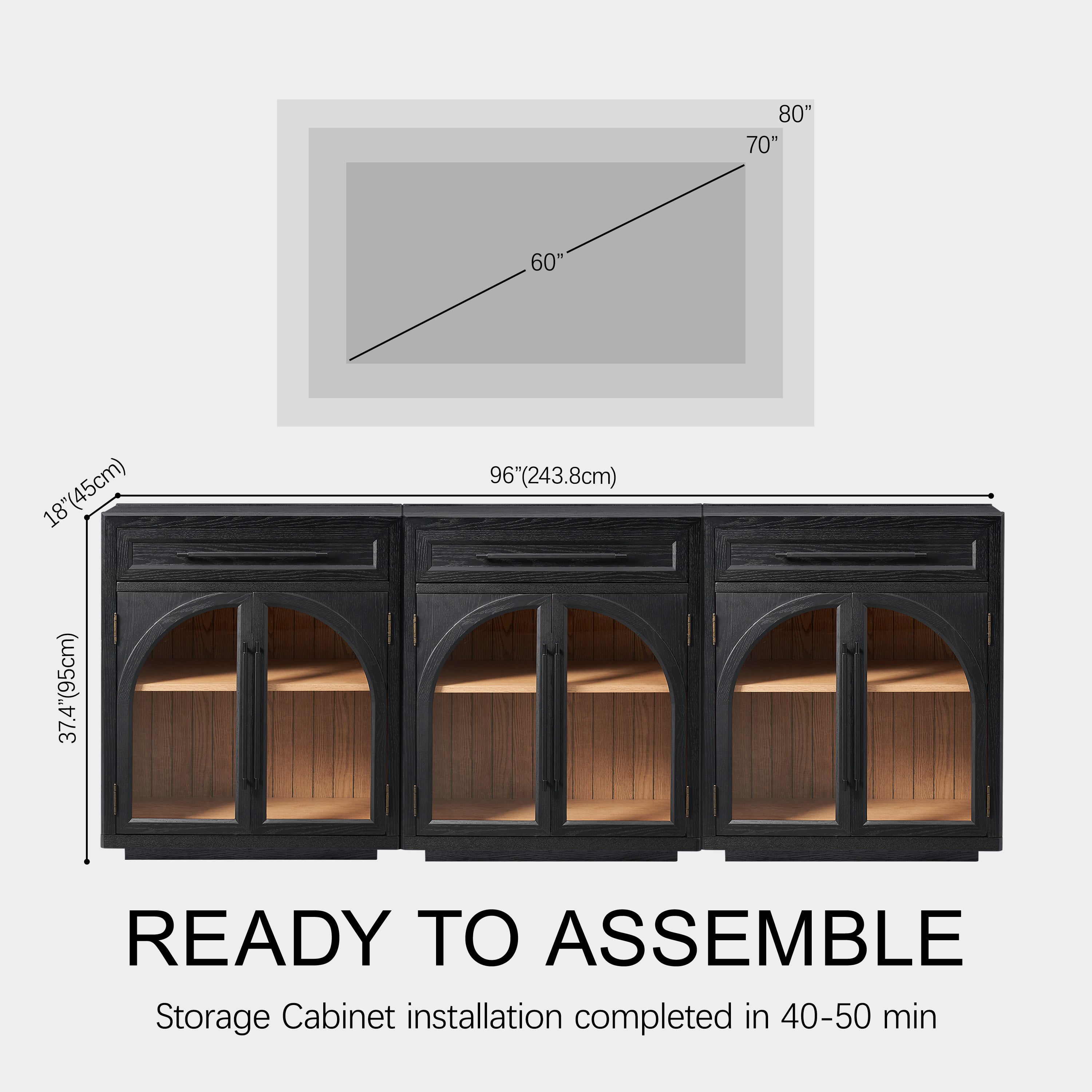 Alvar Arched 96" Oak Sideboard with Drawers(Set of 3)