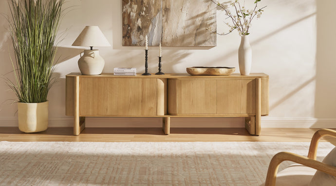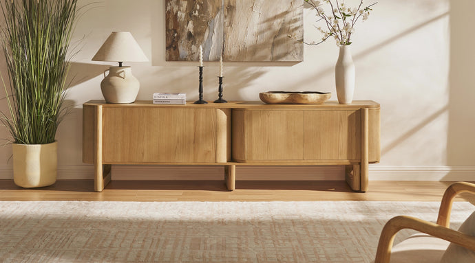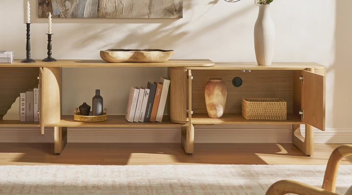 The Silas Extendable TV Stand seamlessly blends modern versatility with timeless design. Crafted from solid wood and veneer materials, its matte finish highlights the natural beauty of wood grain. The extendable tabletop accommodates TVs ranging from 203cm to 280cm, effortlessly adapting to diverse spaces and screen sizes. Combining practicality with contemporary style, it serves as the ideal centerpiece for the modern living room.