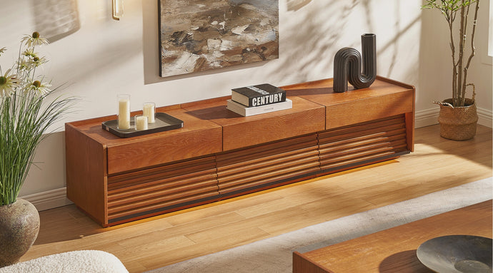 Thank you for your wonderful feedback! We’re delighted to hear that the TV stand fits perfectly with your living room and has become a highlight of the space. It’s great to know that you love the minimalist, handleless design as well as the practical tray feature in each of the three drawers. Your plan to decorate it sounds fantastic, and we’re thrilled that our piece inspires you!