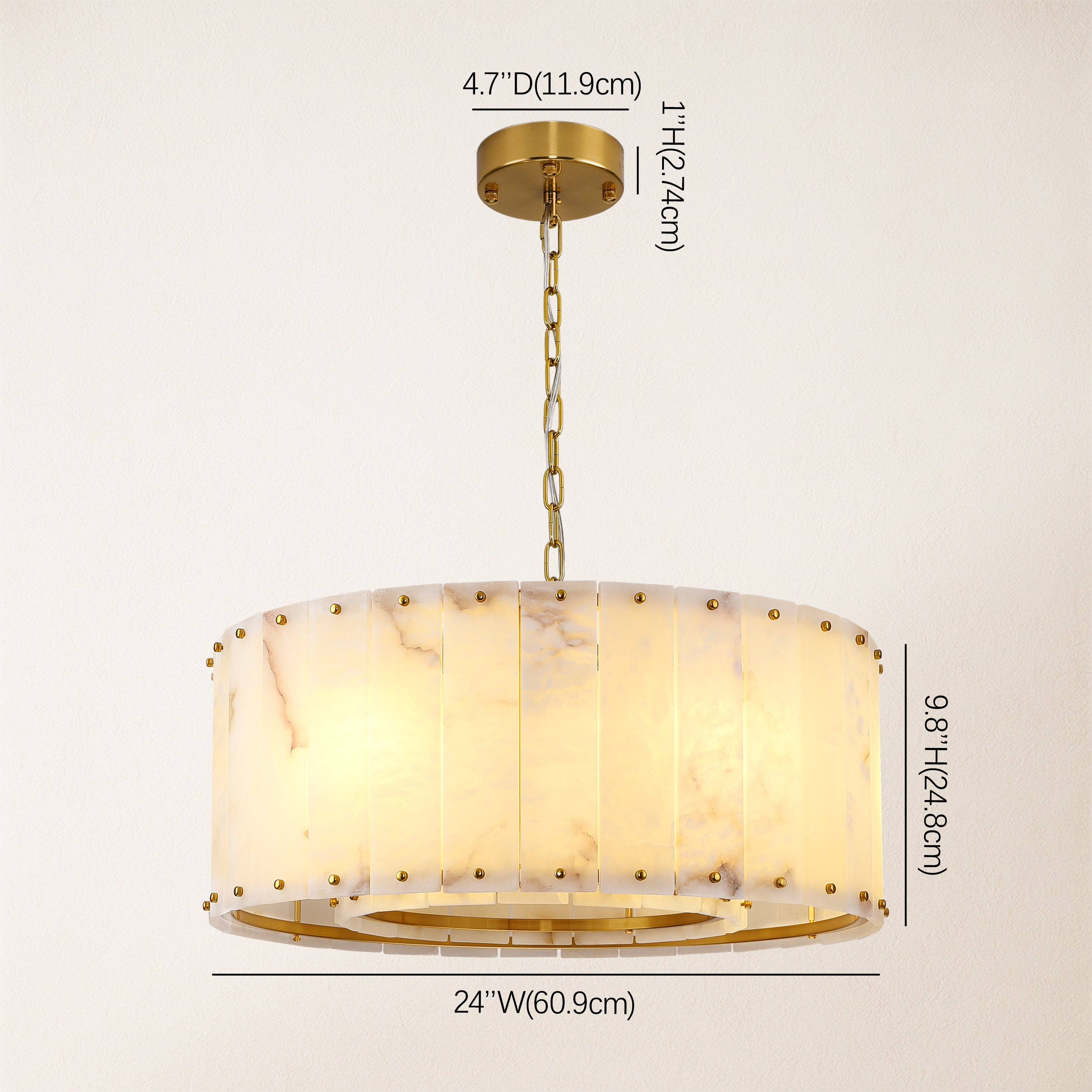 Crafted from natural alabaster, this Nivislight Alabaster Chandelier features softly diffused layers that create a warm, ambient glow. The organic stone disks are hand-assembled onto a refined gold-finished frame, perfect for bringing modern elegance to dining rooms, foyers, staircases, or living spaces. Each piece is unique due to the beautiful veining of the alabaster.