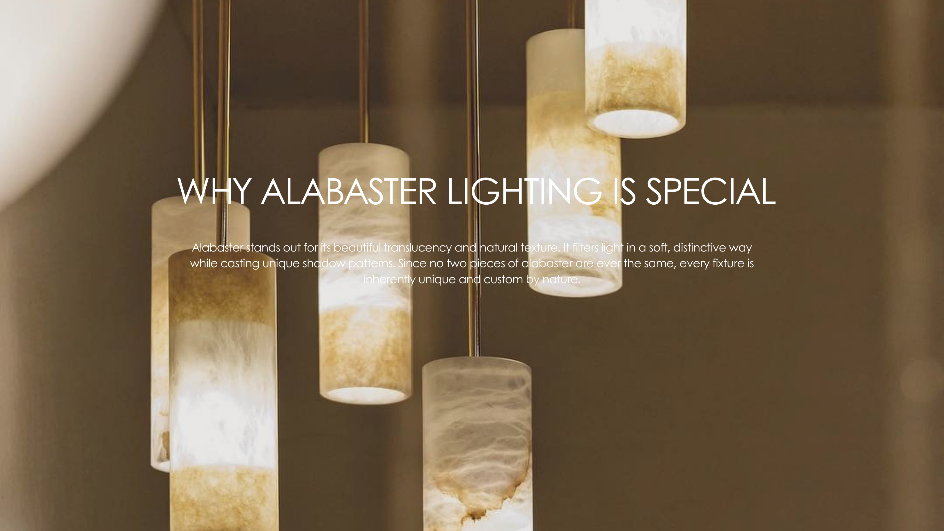 The Alabaster Marble Modern Pendant is a sculptural lighting fixture that combines natural alabaster with minimalist design. The soft, warm glow emitted by the alabaster shade enhances various interior spaces, making it ideal for kitchens, dining areas, or living rooms.