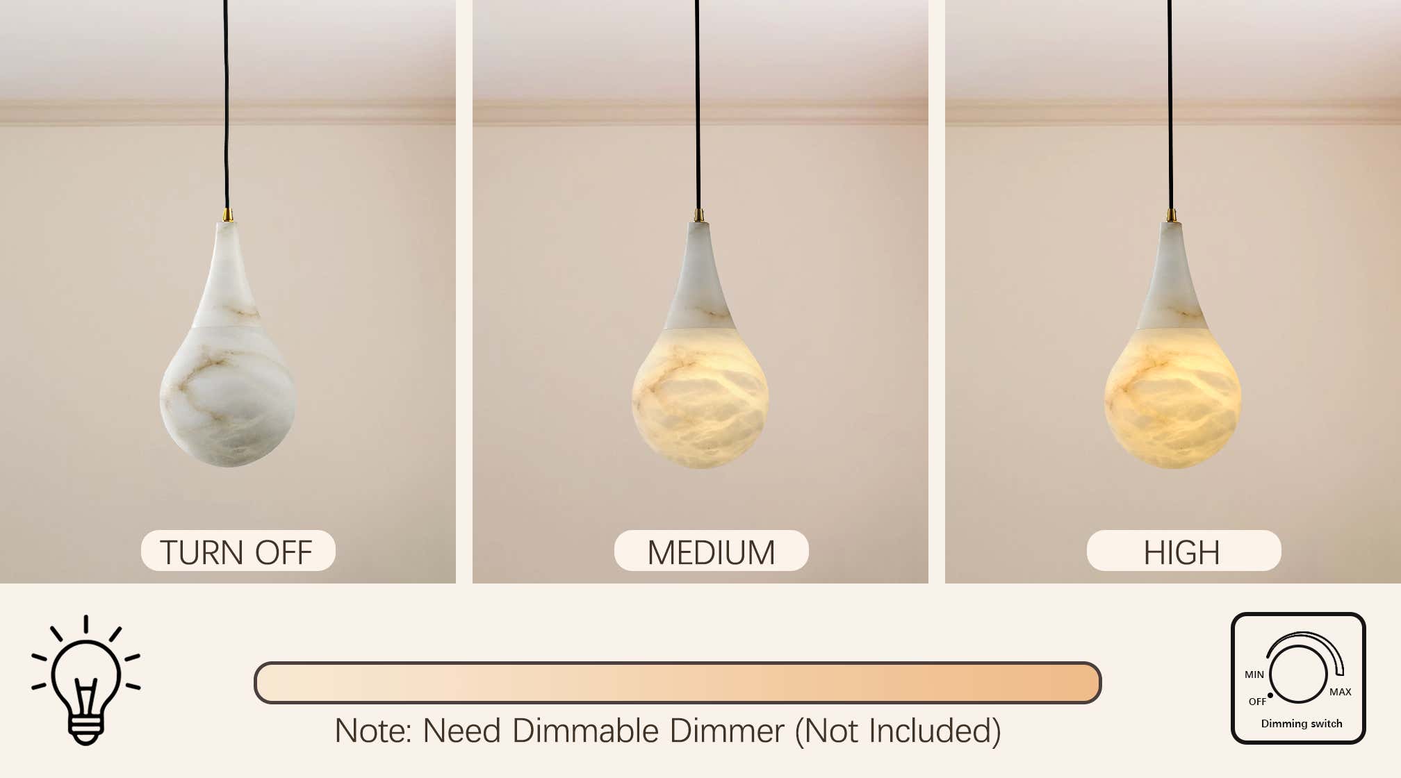 Ares Alabaster Modern Water-Drop Pendant 18cm D