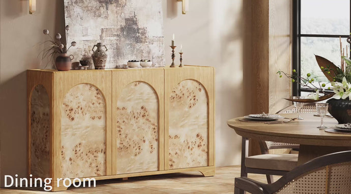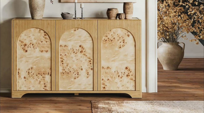 - Boasts natural burl wood characteristics that ensure every individual sideboard is a one-of-a-kind masterpiece.