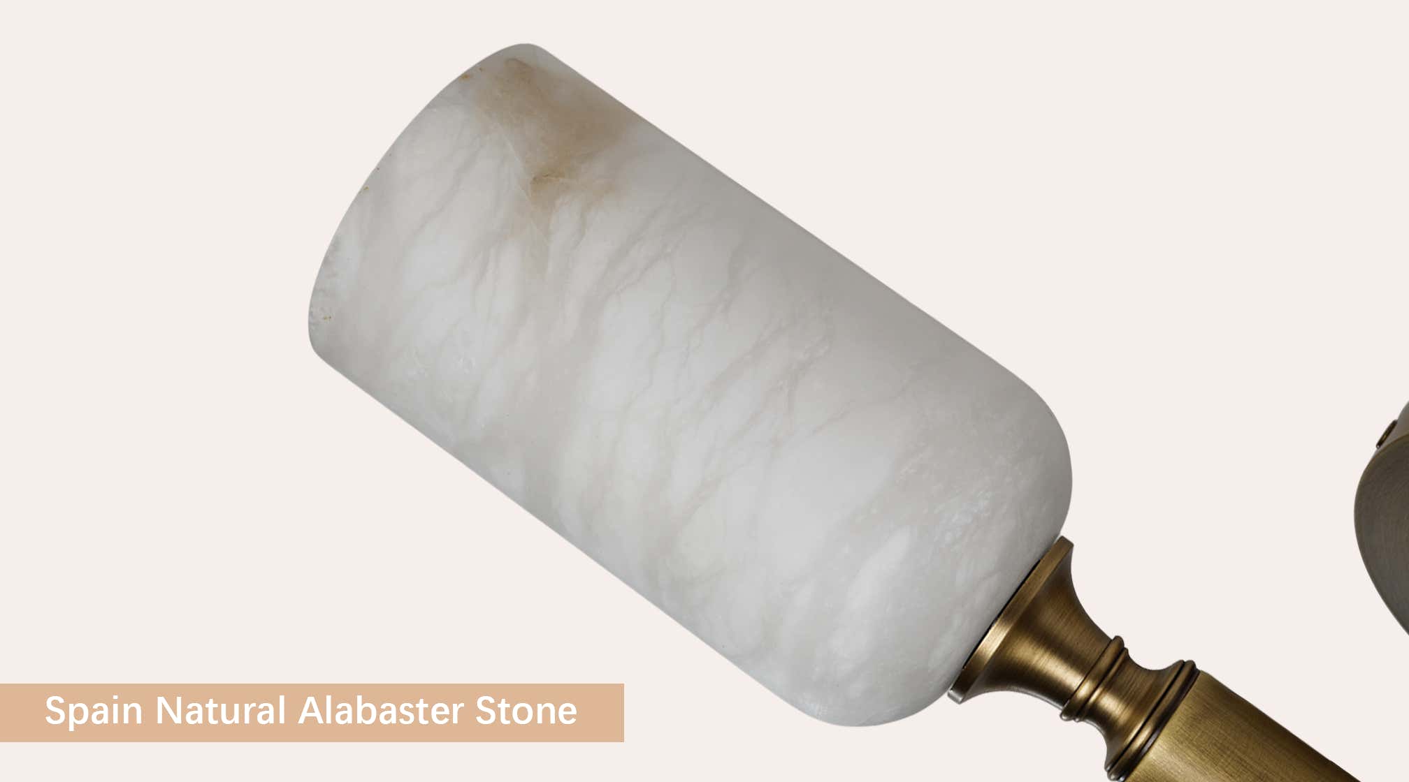 The Axis Alabaster 1 Light Wall Sconce combines natural Spanish alabaster with a sleek metal frame in brass or black finish. Standing at 54.86 cm tall and 7.62 cm deep, its minimalist design adds a touch of elegance to any space. Ideal for bedrooms, bathrooms, or hallways, this sconce offers both functionality and style.