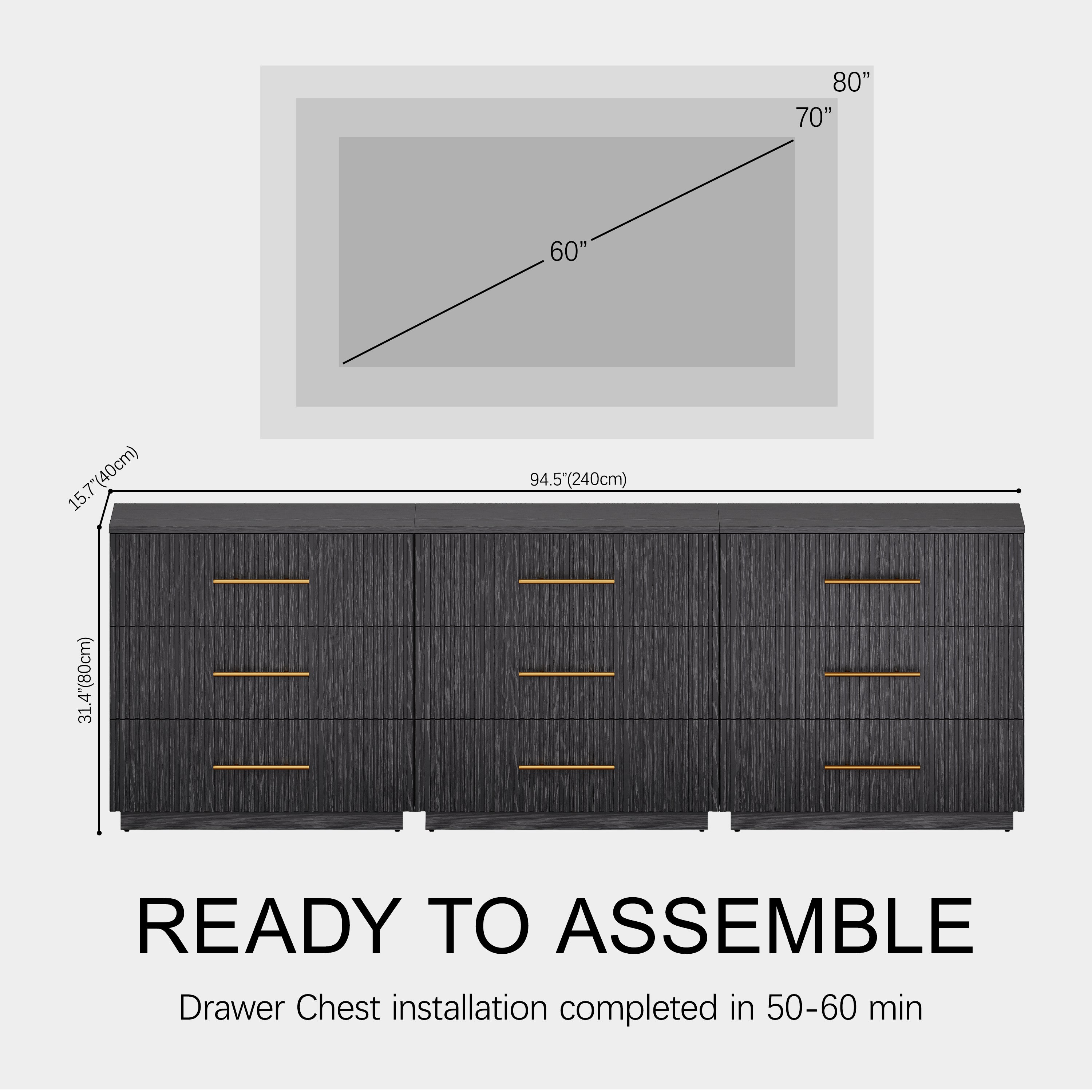 Alvar 95″ Oak 9-Drawer Chest(Set of 3)