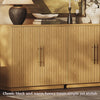 This black cabinet has a minimalist design, yet it feels incredibly premium. The doors feature solid wood vertical slat patterns, adding texture and visual interest—truly stylish. The metal handles sparkle beautifully, feel smooth and sturdy, making the whole cabinet look modern and high-end.