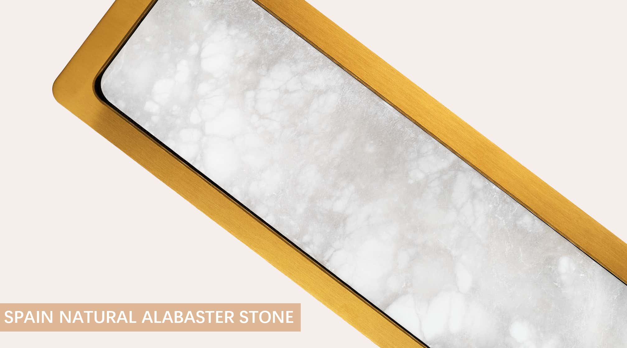 This image highlights the refined beauty of Spain-sourced natural alabaster, renowned for its soft translucence and cloud-like veining. Each stone panel displays unique patterns formed over thousands of years, allowing light to pass through with a warm, diffused glow. The material’s natural variations make every fixture one-of-a-kind, adding depth, elegance, and artisanal character to the design.