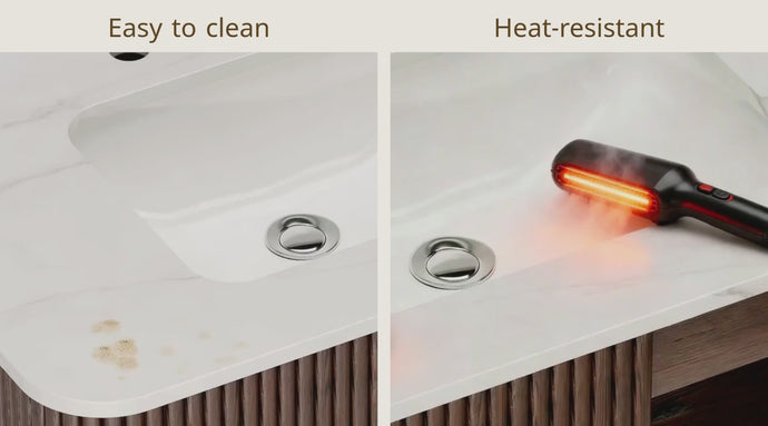 Elevate your daily rituals with a countertop engineered for real life. Unlike porous natural marble that stains easily, our premium sintered stone top is non-porous and hygienic. It offers superior resistance to scratches from razors and heat from hair styling tools. Accidental makeup spills or toothpaste splatters wipe away instantly, keeping your vanity looking pristine and brand new for years to come.