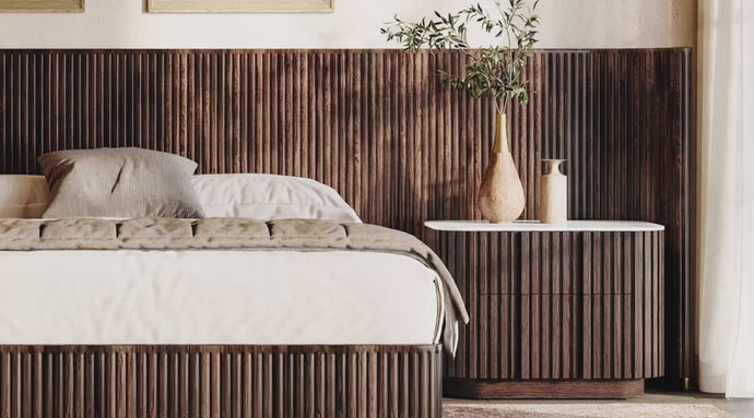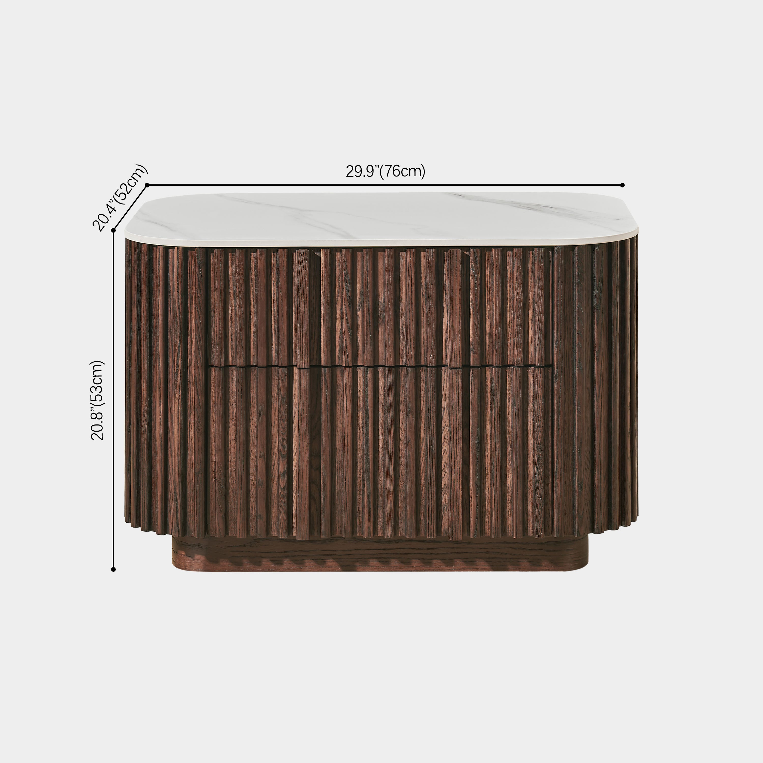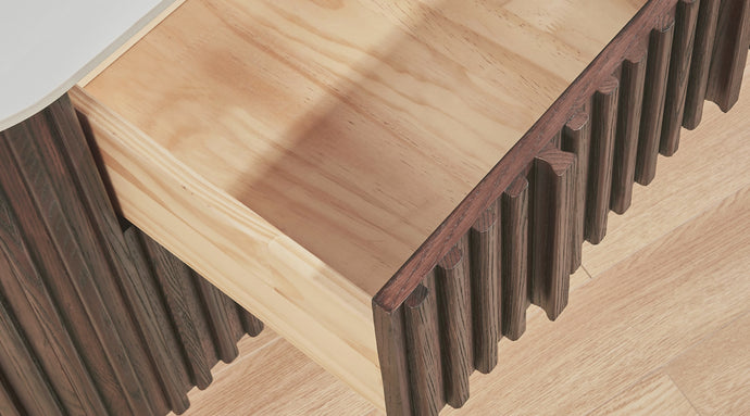 Riley Nightstand is a study in balance and texture. Constructed with a durable engineered wood core and finished in a rich dark walnut veneer, the piece is defined by its sculpted vertical slatted facade that adds depth and architectural character. A solid stone tabletop introduces a refined contrast, grounding the design with a clean, modern edge. Thoughtfully proportioned and built for everyday use, Riley brings understated sophistication to the bedroom.