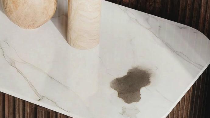 Solid stone tabletop offers a durable, easy-to-maintain surface for daily essentials.