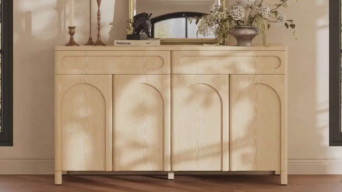 More than a storage piece, the Amari 63" Sideboard is a masterclass in architectural elegance. Its expansive silhouette, featuring signature arched carvings and striking mountain-grain red oak veneers, turns your dining room into a curated gallery. Designed for large families, it seamlessly bridges the gap between artisanal craftsmanship and high-capacity modern utility.